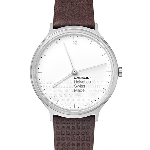 MONDAINE 瑞士國鐵 浮雕字體紀念版-38mm/咖啡 Mondaine Helvetica – Homage to type letters向印刷字體致敬 就像印刷字體一樣,Mondaine對於發展Helvetica這系列非常謹慎,以一種簡約而且高識別度的手法,持續地推出設計精良的腕錶。 今年的Homage to type letters限量特別版紀念腕錶由一位致力於印刷工藝的字體排印學教授Indra
