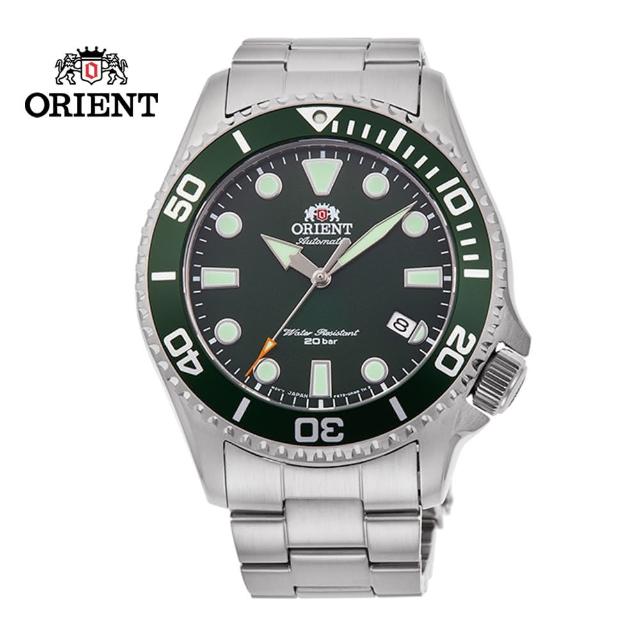 【ORIENT 東方錶】ORIENT 東方錶 WATER RESISTANT系列 200m水鬼潛水錶 鋼帶款 綠水鬼 - 43.4mm(RA-AC0K02E)