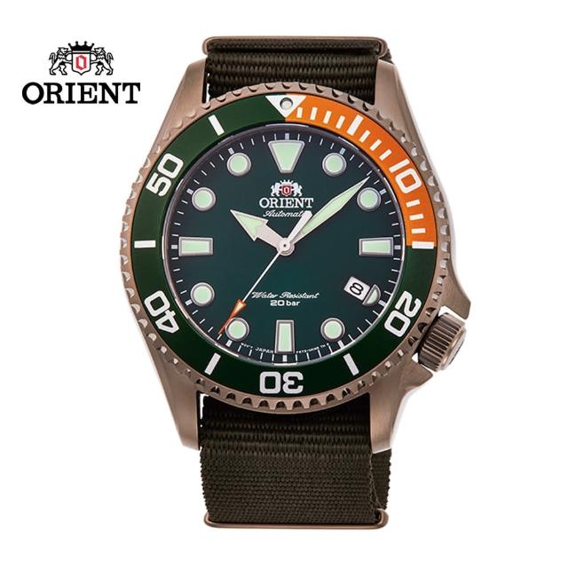 【ORIENT 東方錶】ORIENT 東方錶 WATER RESISTANT系列 200m水鬼潛水錶 尼龍帶款 綠水鬼-43.4mm(RA-AC0K04E)