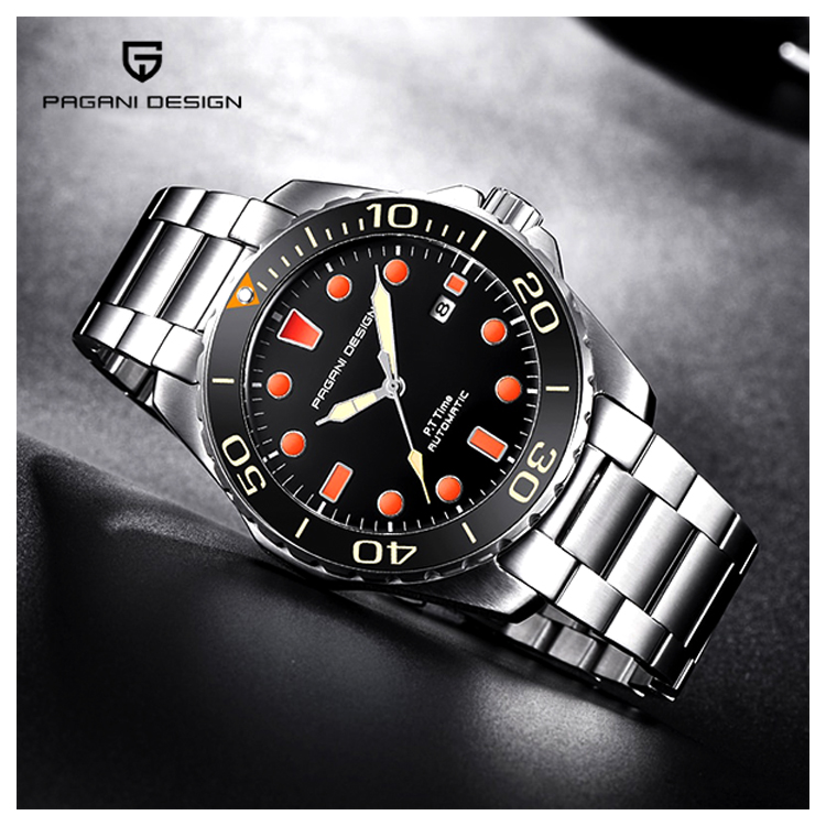 【PAGANI DESIGN】經典機械水鬼不鏽鋼自動機械錶 PD-1632-黑橘 ﹥>﹥推薦介紹資料※PAGANI機械水鬼不鏽鋼 💚新品快報 (* ̄m ̄) 稍微說明一下官網報導中的 特色,PAGANI機械水鬼不鏽鋼 不鏽鋼錶帶,自動機械錶,時尚單品。