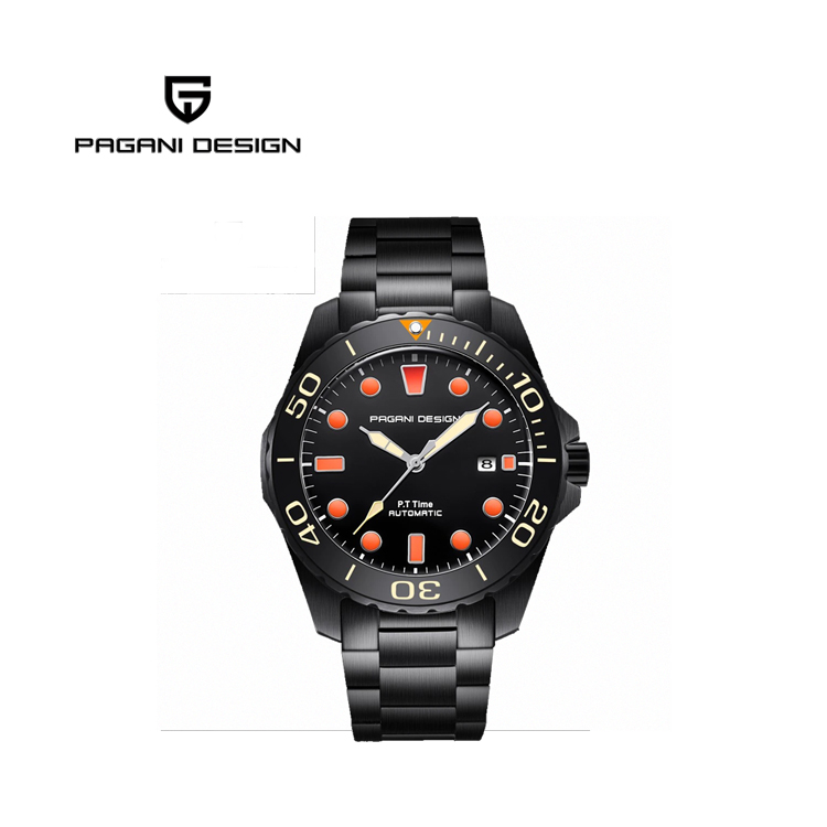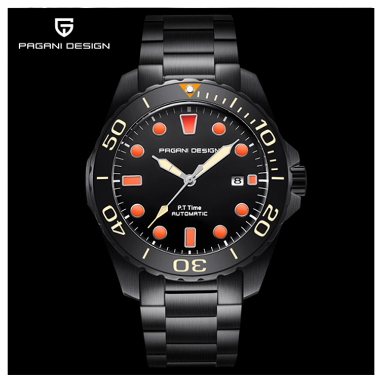 PAGANI DESIGN 經典機械水鬼不鏽鋼自動機械錶 PD-1632-黑橘、