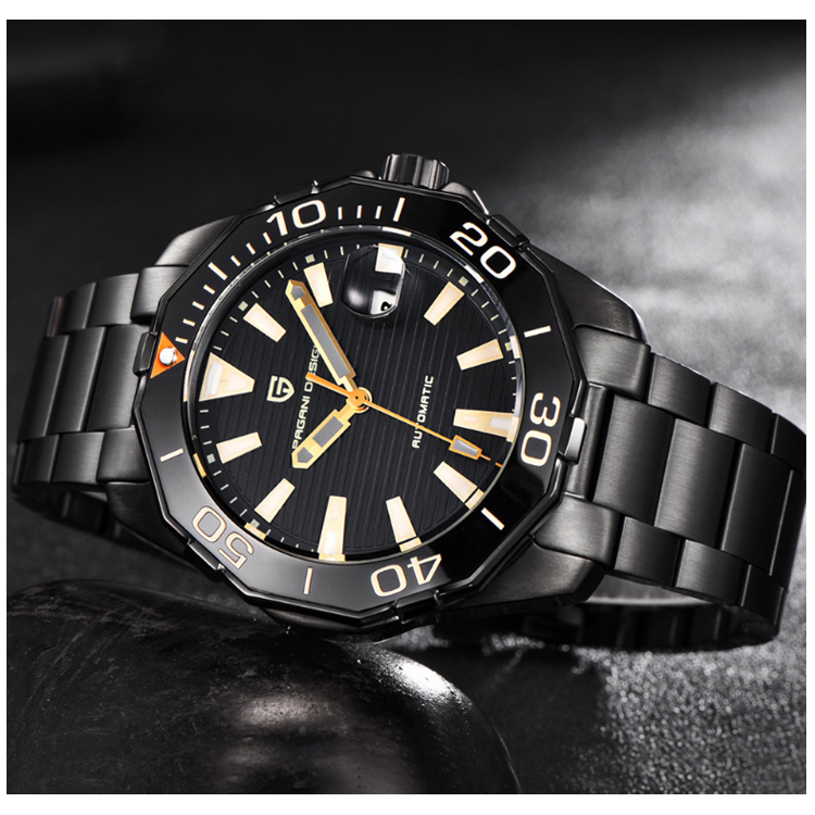 【PAGANI DESIGN】經典機械水鬼不鏽鋼自動機械錶 PD-1632-全黑